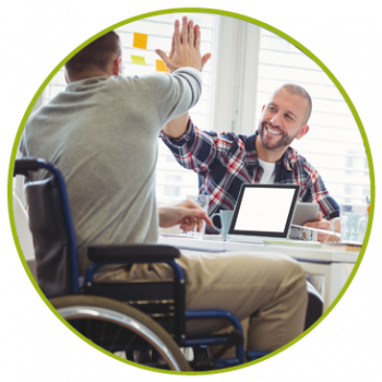 Als qualifizierter Dienstleister mit hoher Fachkompetenz begleiten wir Menschen mit Behinderung auf ihrem Weg in den Arbeitsmarkt. Gleichzeitig stehen wir Arbeitgebenden und Verbänden mit Rat und Tat zur Seite. So schlagen wir die Brücke zwischen den Anforderungen und Erwartungen auf Arbeitgeberseite sowie den Möglichkeiten und Fähigkeiten der Bewerber.